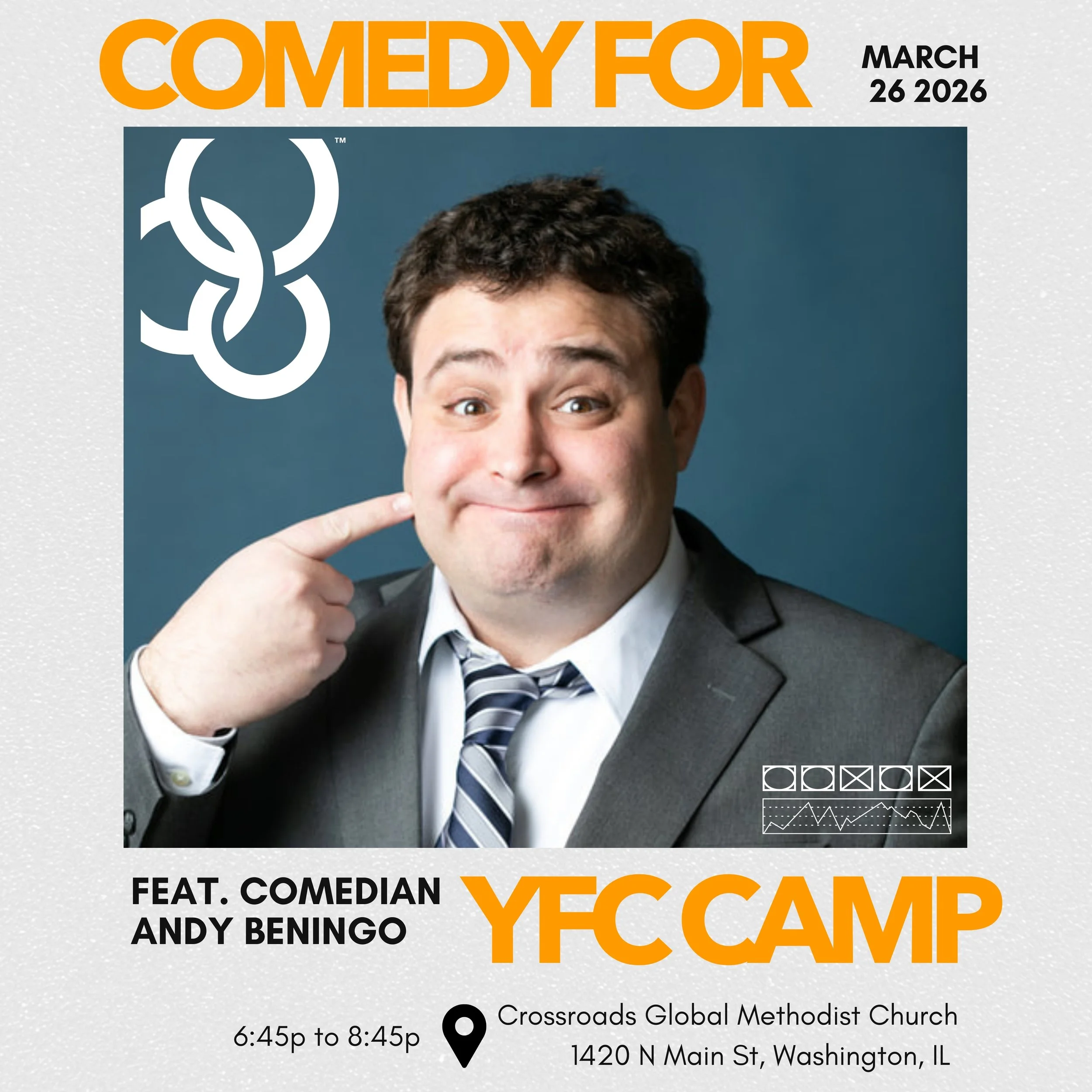 Come for a night of laughs from comedian Andy Beningo and to raise money for students to go to Youth for Christ Camp!